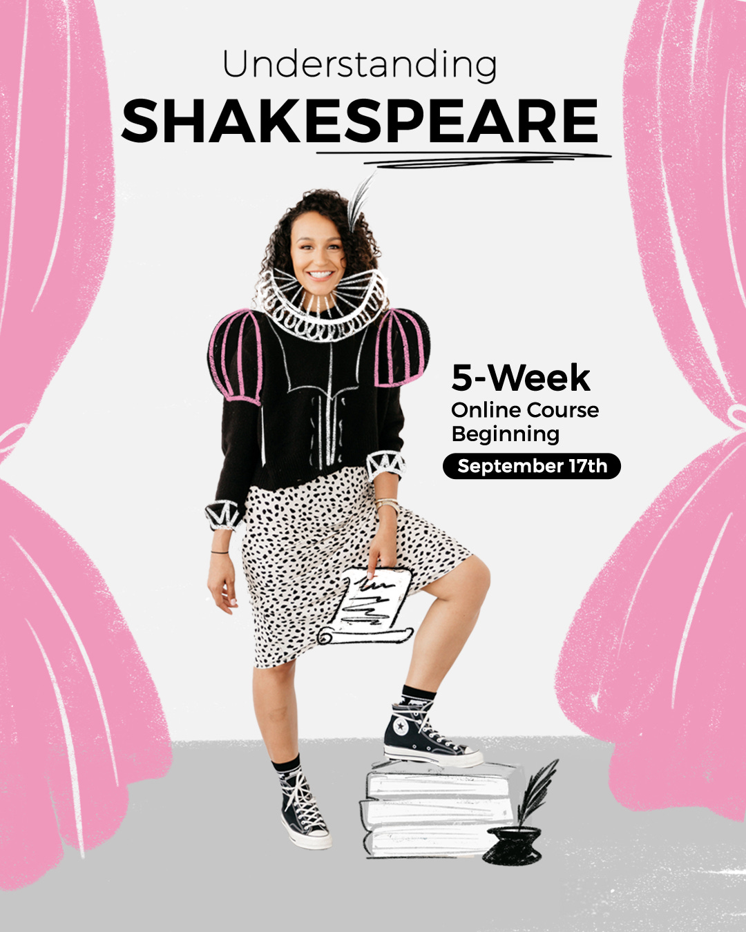 There are just a few spots left in my Understanding Shakespeare class. It starts September 17th, and it is going to be the most fun you can have learning Shakespeare, I promise.