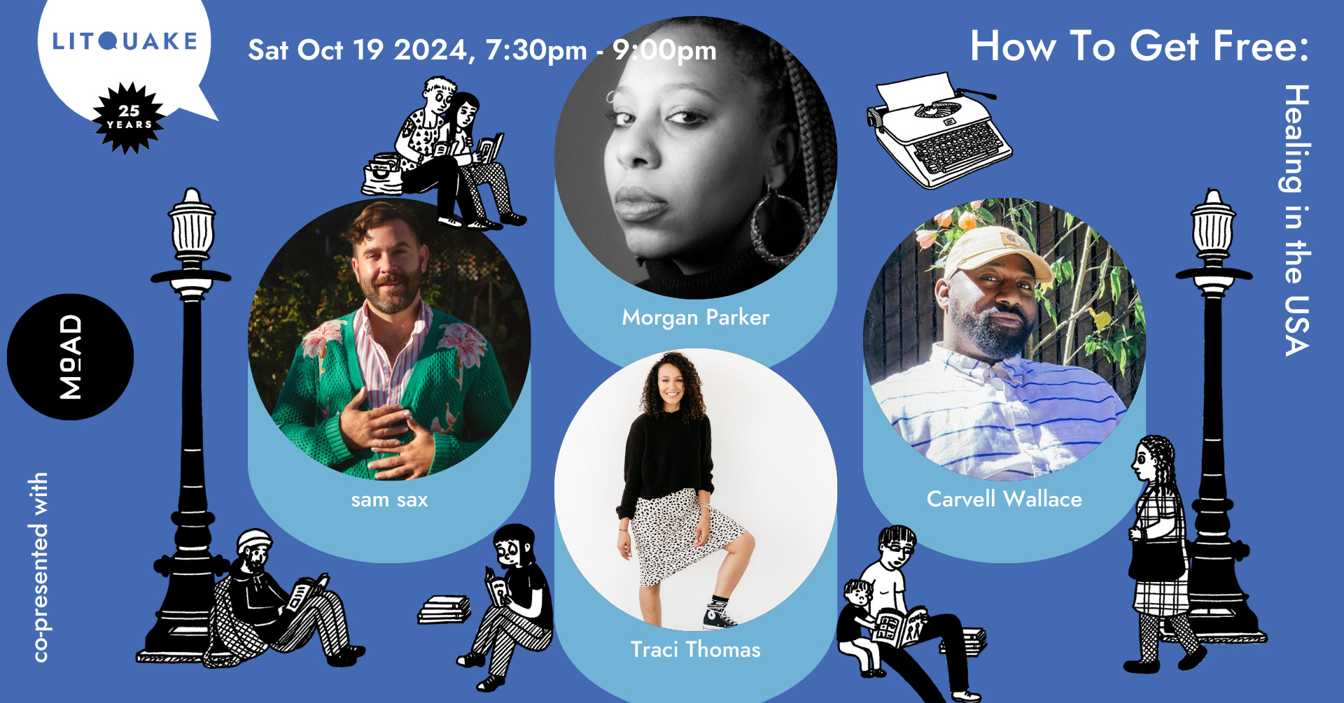 I’ll be in San Francisco on October 19th for the Litquake book festival talking to friends of the pod Carvell Wallace and Morgan Parker, and National Book Award longlister Sam Sax. Get your tickets.