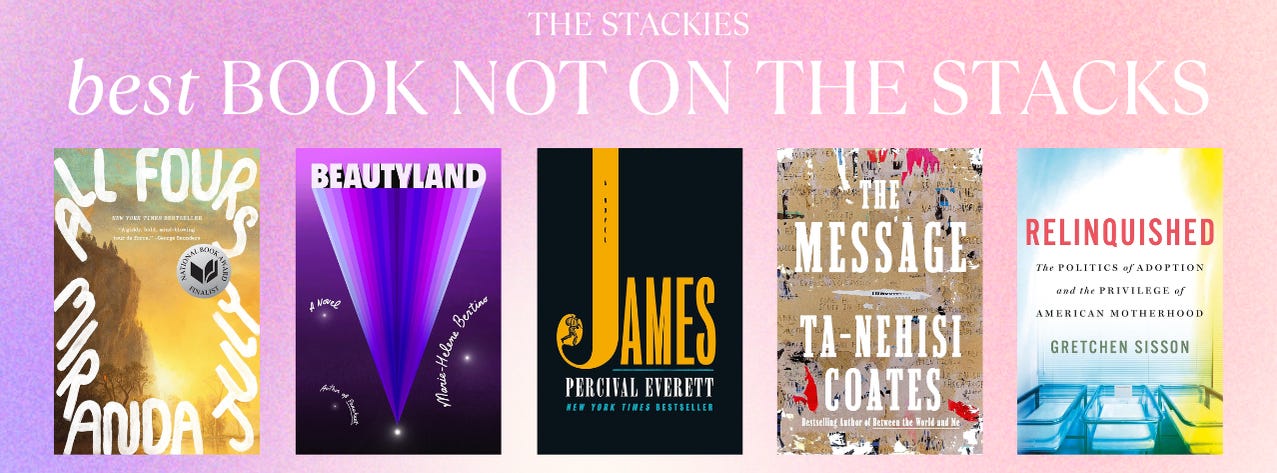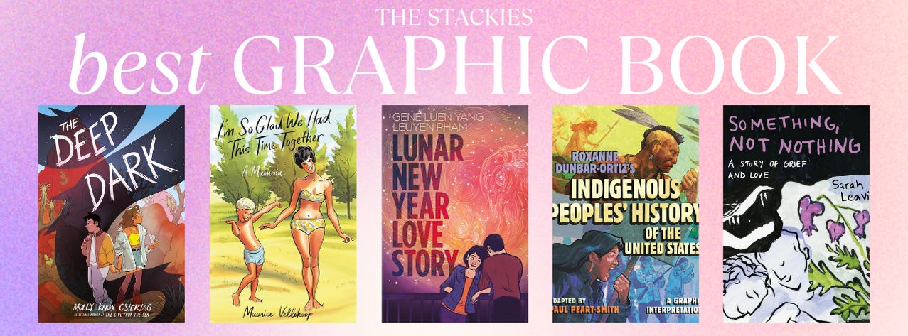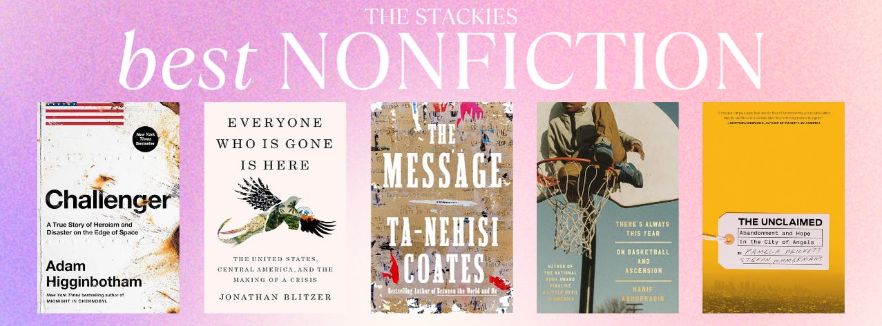 Over 100 ballots were submitted to nominate books for the 2024 Stackies. I tallied them up, and the top five vote-getters in each category are below as the finalists for the 2024 Stackies. Voting will open up on January 13th for all paid subscribers to Unstacked and run through January 17th. The winners of this year’s Stackies will be announced on Friday, January 24th.